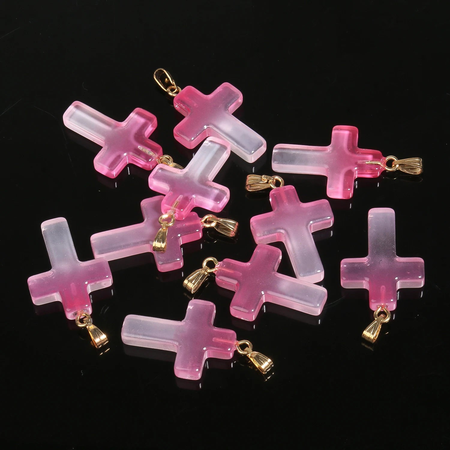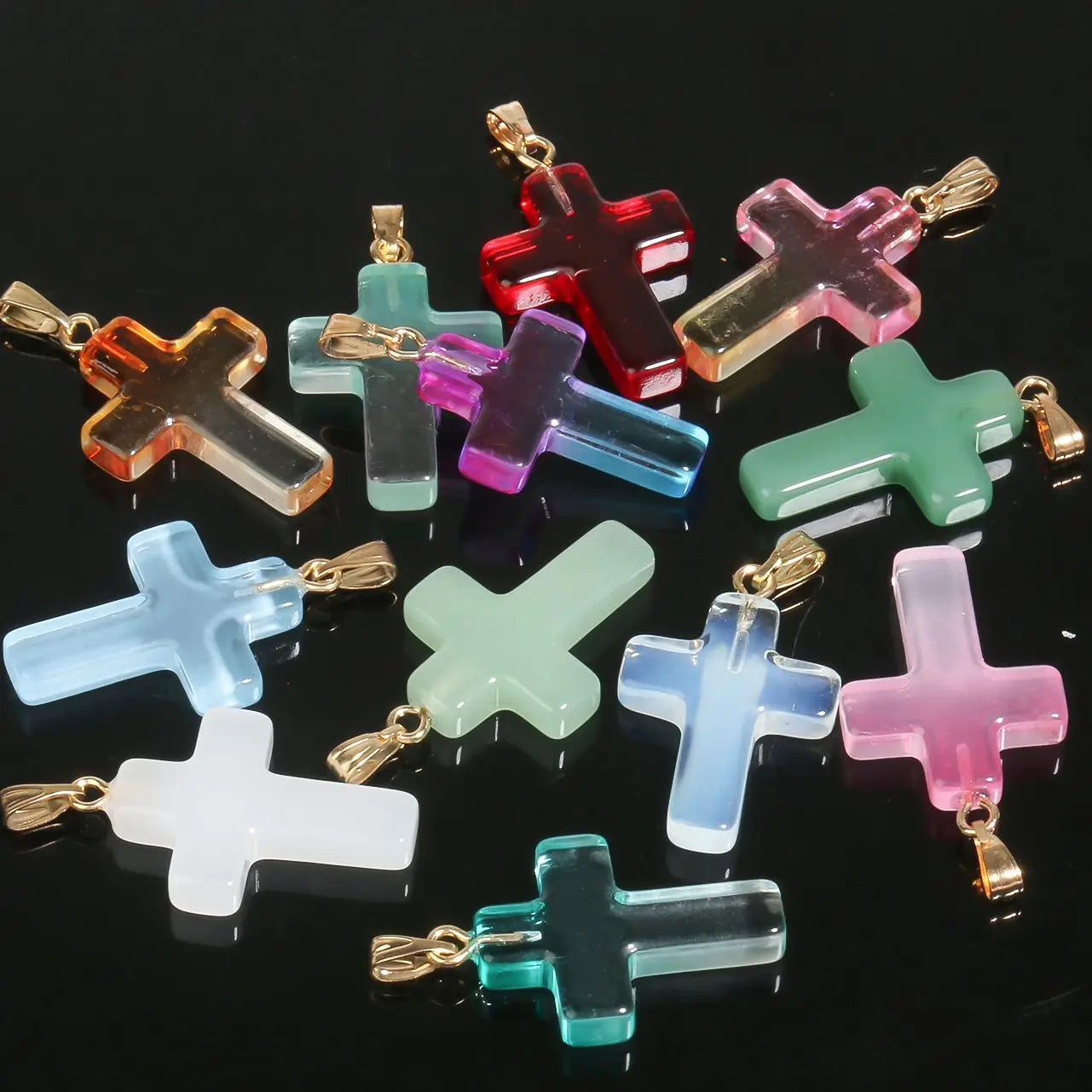 Apportez une touche spirituelle et artisanale à vos créations avec ce lot de 10 pendentifs croix en verre Lampwork. Idéal pour la fabrication de colliers, bracelets et bijoux DIY, chaque pendentif est réalisé en verre tchèque décoratif avec des couleurs lumineuses et uniques.