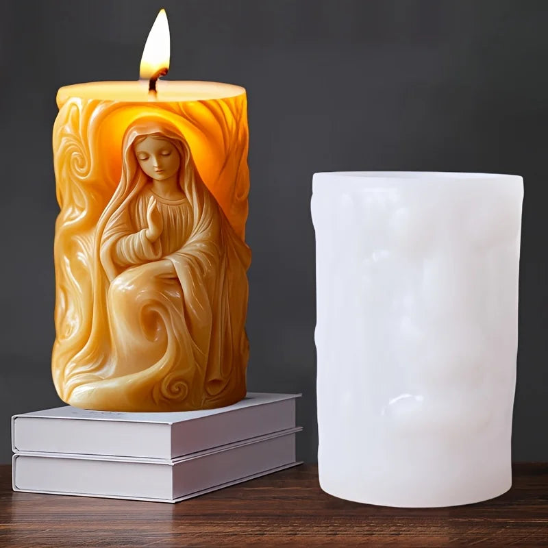 Moule Silicone Bougie Vierge Marie – Cylindre Relief Prière – Résine, Cire & Plâtre